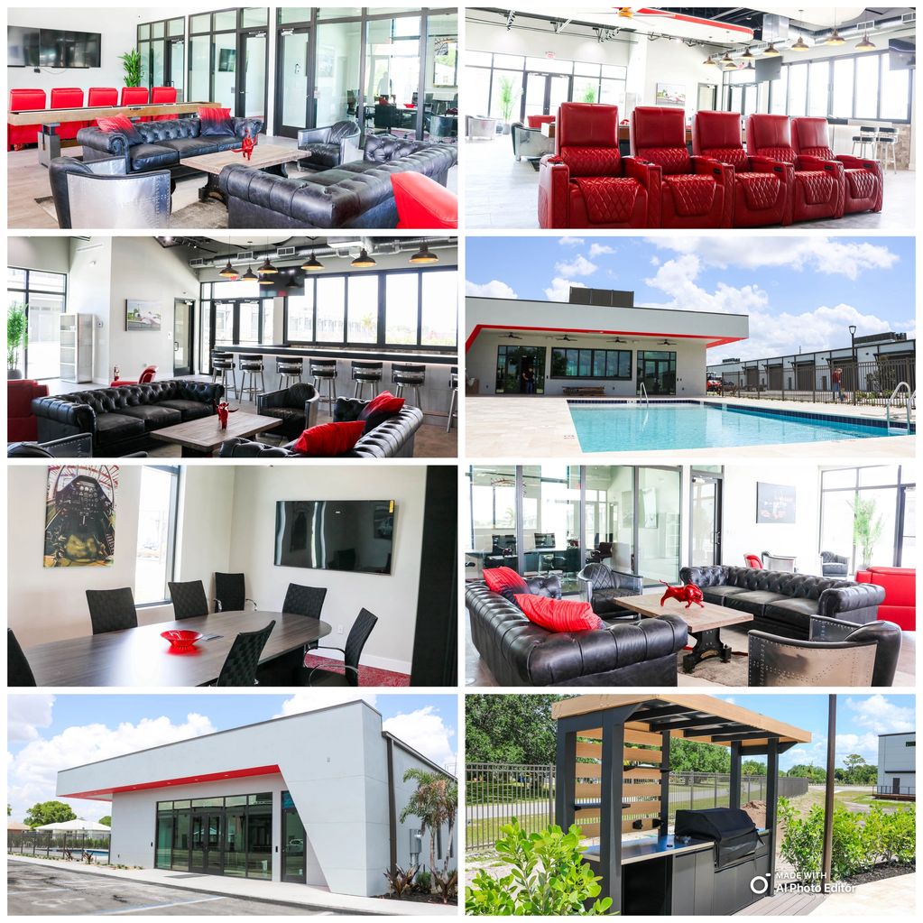 Rent this incredible Luxury Garage complete with full kitchen, one full bath with shower downstairs and one half bath upstairs. Sleeps 4 guests with beautiful living space. Magnificent clubhouse with swimming pool. Bring your exotic car or RV to spend time enjoying life.